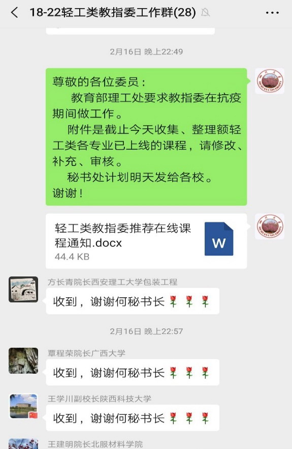 为认真贯彻落实新冠肺炎疫情防控背景下“停课不停教、停课不停学”的指示精神和工作要求,全力保障各轻工类专业有序开展在线教学工作,四川大学轻工科学与工程学院作为教育部高等学校轻工类专业教指委主任委员单位,在教指委主任石碧院士的组织策划下,�2�10日起收集整理全国轻工类各高校的在线专业课程资源,经教指委主任网络会议集中审议通过后,以轻工类教指委的名义向全国轻工类院校及专业推荐使用,并得到各轻工类院校及专业的积极响应和推广�