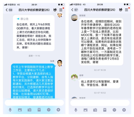 突如其来的新冠疫情打乱了本学期的正常教学计划安排。根据学校和学院不停课、不停学的要求,纺织工程教研室于2020年2月初先后多次召开线上教学研讨会,部署线上教学活动。并组织老师学习爱课堂、学习通、腾讯会议等线上教学工具,对遇到的问题进行答疑,确保每门课程都进行了妥善安排,落实了线上教学方案。