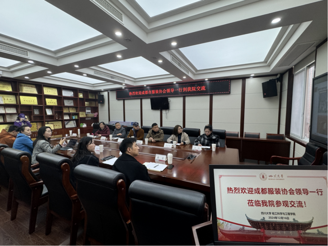 2024年12月16日下午,成都服装(服饰)行业协会会长李雪辉一行走访调研我院,双方就专业建设、校企合作、学生就业等议题展开深入交流,共同探讨人才培养与及行业发展新方向。参加调研座谈会的有学院党委副书记冯国涛副教授、服装与服饰设计系主任杨璐铭教授、教研室主任刘健西老师、2021级辅导员贾欣驹老师及教师代表廖勇老师、时昱老师。会议由杨璐铭老师主持。