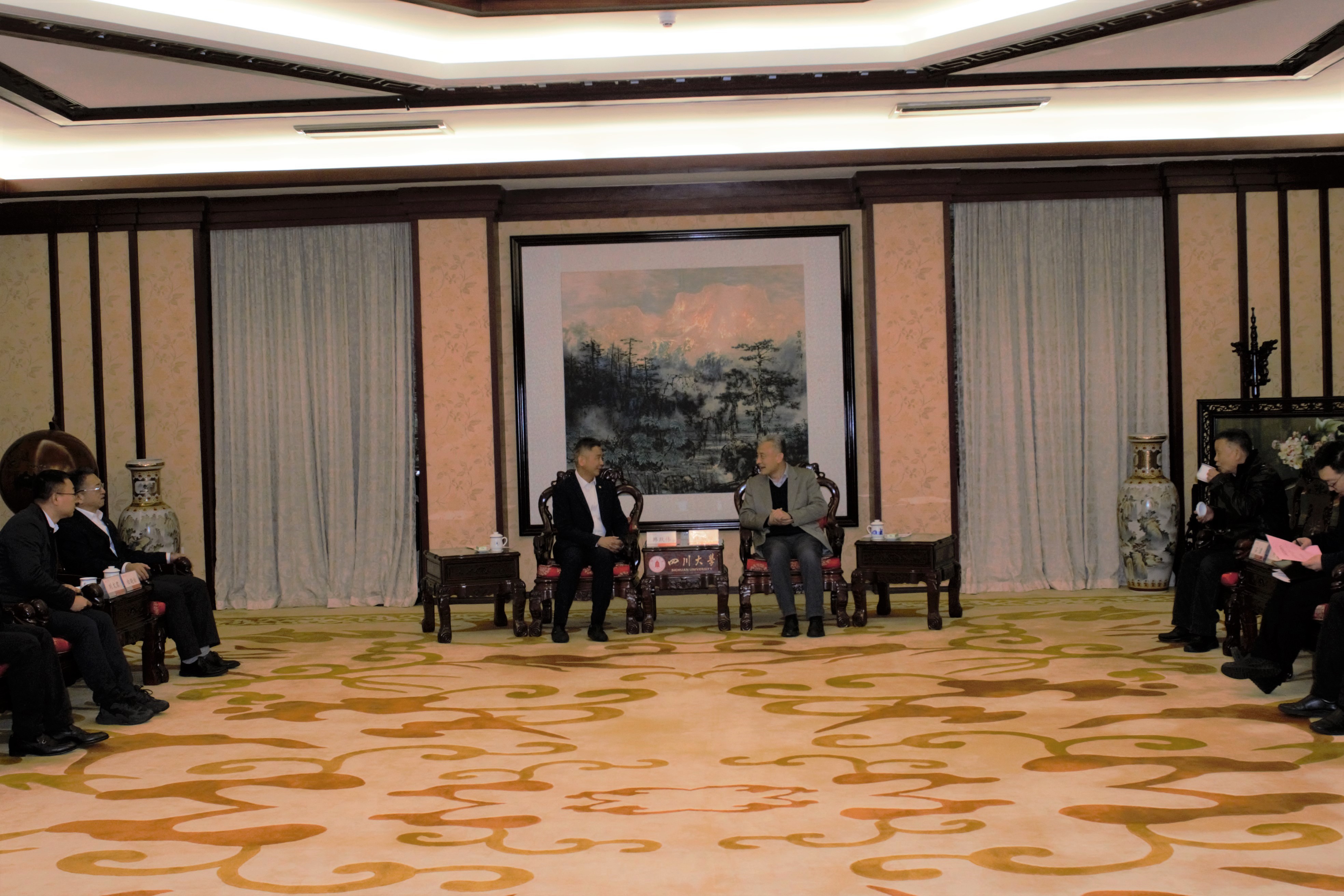 2月24日,华润集团公司副总经理韩跃伟、华润医药集团公司董事会主席白晓松一行来校访问。校长汪劲松在望江校区明德楼贵宾厅会见来宾。中国工程院院士石碧、副校长刘超、我院党委书记李天富,校企双方有关单位负责同志参加会见。
