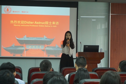 高端外籍教师Didier Astruc院士在望江校区皮革楼215报告厅为我院研究生做了题为“Ferrocene Dendrimers”的学术讲座。讲座由李杨同学主持,何有节教授与辜海彬副教授出席了本次学术报告。