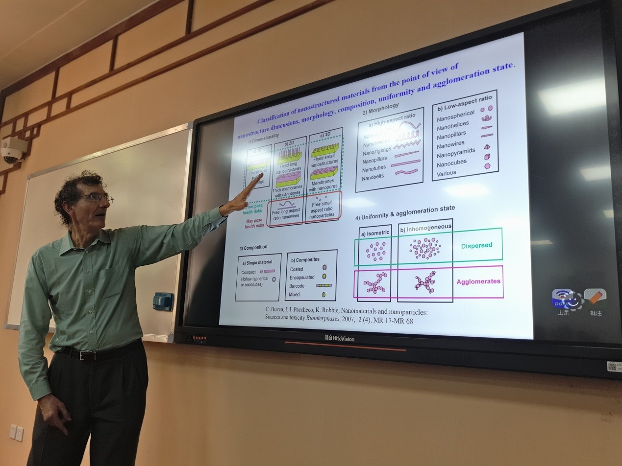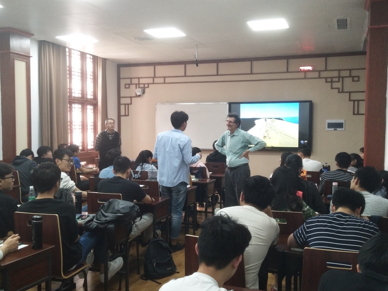 讲座开始时,Didier Astruc院士向同学们介绍了其所在的城市——法国波尔多的历史文化和特色建筑。随后,Didier Astruc院士向同学们讲授的纳米科学(nanoscience)”的历史,引出纳米材料(nanomaterials)的定义、类型及分类。然后,以纳米金为例,详细的介绍了纳米金的性质及研究现状,并特别介绍了在不同条件下纳米金所形成的不同颜色。最后,列举了纳米金在生物医药、导体、催化等方面的应用。Didier Astruc院士的报告幽默风趣,内容深入浅出,激起了在座同学们的浓厚兴趣。在讲座的提问环节,同学们踊跃发言,积极地与Didier Astruc院士进行讨论。