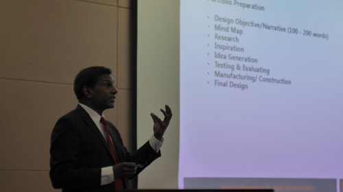 2018年3月12日下午,英国伯明翰城市大学艺术设计学院教授Dr. Panchalingam Suntharalingam为我院服装与服饰设计专业师生带来一场题为“如何准备作品集”的讲座。