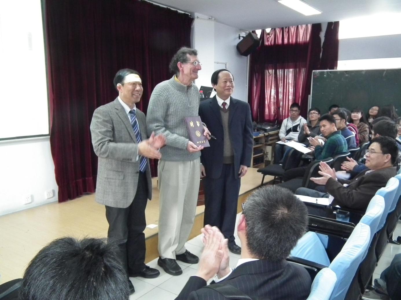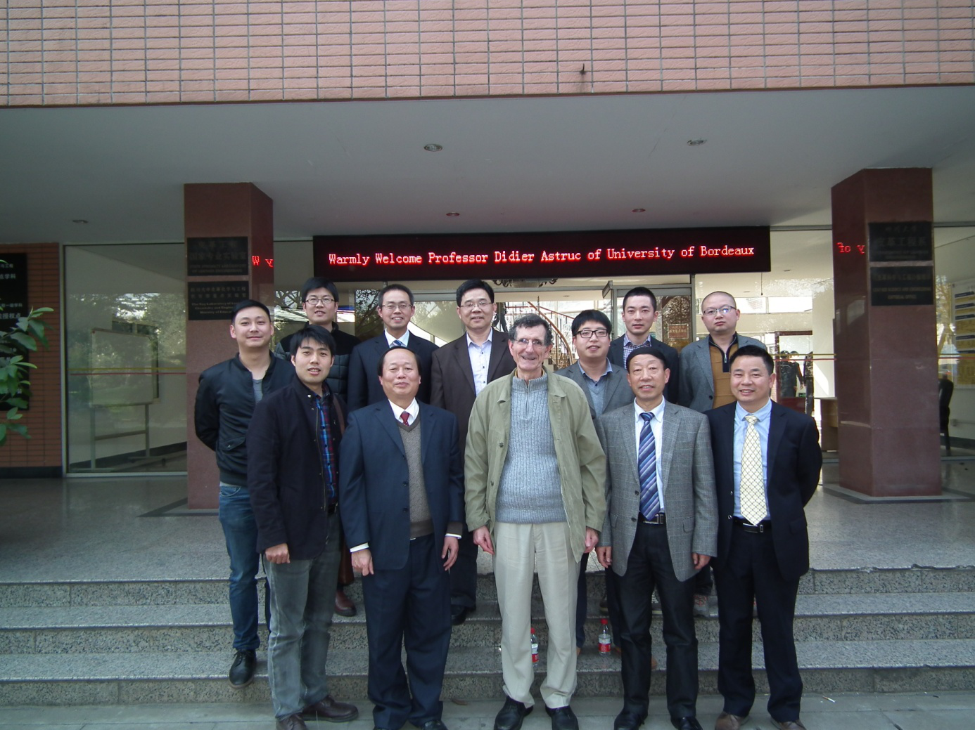 向Didier Astruc教授颁发了客座教授聘书。重点实验室主任范浩军教授、生物质与皮革工程副主任彭必雨教授等教师和学生聆听了Didier Astruc教授的精彩报告。Didier Astruc教授从金属有机化学的角度介绍了树状大分子(dendrimer)的合成及功能化修饰,并对树状大分子的历史、关联、拓扑学、功能和应用进行了梳理;详细讲述了其课题组在金属有机树状大分子、纳米金属粒子的制备及在电化学识别等方面所做的前沿性研究工作,特别介绍了以树状大分子包裹具有催化作用的纳米金属粒子以及金属有机聚合物,作为纳米反应器催化各种不同的化学反应,最后对纳米功能材料的分子设计及纳米催化进行了展望。Didier Astruc教授的报告幽默风趣,内容深入浅出,激起了在座老师和同学的浓厚兴趣,通过面对面地交流,拓宽了我院师生的国际视野,将对我院未来学科交叉的发展提供帮助。讲座结束后,Didier Astruc教授在陈武勇教授等人的引领下参观了生物质与皮革工程系和重点实验室的分析测试中心,然后在皮革楼209会议室与学院和重点实验室的领导和部分青年教师进行深入地学术讨论与交流,为进一步地科研合作打下了良好的基础。Didier Astruc教授是世界著名的金属有机化学家,拥有众多学术荣誉,是世界Top-100化学家、法兰西大学研究院资深院士、欧洲科学院院士、德国科学院院士、欧洲人文和自然科学院院士、欧洲艺术与科学院院士,是世界顶尖的科学家。Didier Astruc教授与我院皮革科学与工程学科有密切合作,已为我院培养了1位博士和1位博士后(辜海彬副教授)。Didier Astruc教授的研究领域主要包括:金属有机高分子的合成及功能化;纳米材料(金、钯、铂等)的制备及在药物输送、分子识别、绿色催化、分子电池等领域的应用。