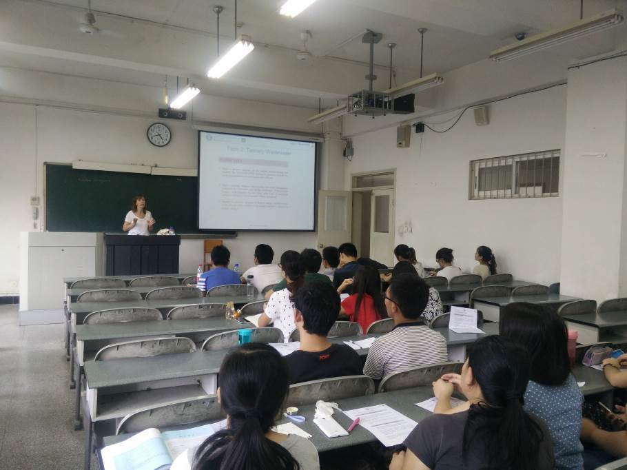 望江校区基教楼A311讲学,为选课的本科生介绍了自己的研究方向和国际实践周课程的主要内容。Rita教授以“When environmental problems begin”为引子,结合自己在化学工程和环境管理、特别是在生命周期评价(LCA)领域的研究,为在座学生讲述制革工业中环境问题的产生来源、制革过程中固体废弃物和废水的环境影响现状及其现有解决方案和配套技术。在课程的教学过程中,Rita教授采用流程图的方式将课件教学内容与板书相结合,并辅以课堂练习,以其清晰而充实的教学方式,为每一同学悉心讲解课件中出现的专业名词和术语以及背后的环境专业知识。在与同学们的课外交流,Rita教授以其亲和而富有耐心的方式,结合自己多年的教学经验,积极回答每位同学提出各种问题。据悉,Rita教授此次的课程将持续到7月15日,在此期间按照她的课程安排,会让同学们参与到利用LCA工具计算环境影响因子的课堂练习,这将进一步扩充同学们的专业技能,并提升同学们运用新工具和新方法解决问题的能力。通过这次“实践与国际课程周”活动,我院本科生对制革过程中的诸多环境问题、现有解决方案与技术和环境影响评估体系将有更为深入的学习。这不仅可以扩充轻化工程专业本科生的专业知识,更可以利用此次活动开阔专业视野,并为复合型人才的培养提供新的教学模式。