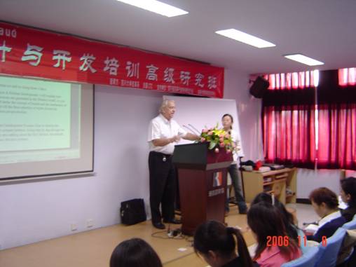 皮革系报告厅做“女鞋设计与开发培训高级研究班”的课程 本次活动是为了配合“中国女鞋之都”区域品牌的打造,加速提升成都鞋业对产品开发的水品和创新能力,与世界制鞋发达国家的技术接轨,改变在设计上只有仿造没有设计的面貌。特别是在设计创作与版样制作方面。研究班将花四天时间进行学习。法国设计师Jean Renaud将面对面的进行传授高超的制鞋设计技艺。轻纺与食品学院2004级轻化工程革制品专业本科生参加了此次会议。研究班吸引了成都十余家制鞋企业参加,他们是:爱民儿鞋业、银云鞋业公司、派中派鞋业公司、紫玉兰鞋业公司、新亚西鞋业公司、美丽点鞋业公司、三美鞋业公司、小罗号鞋业公司、豪晟鞋业公司等。学习班人数超过100人,说明成都鞋业真正在从设计开发和人才培养方面下大力气,作眼于长远和未来。研究班主办单位是四川省皮革行业协会鞋业分会和成都博瑞制鞋培训中心。11月6日开办仪式由NT动漫