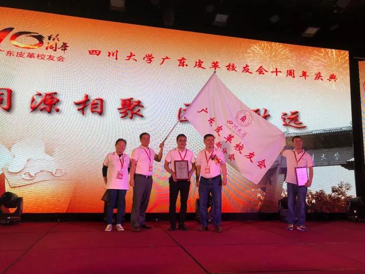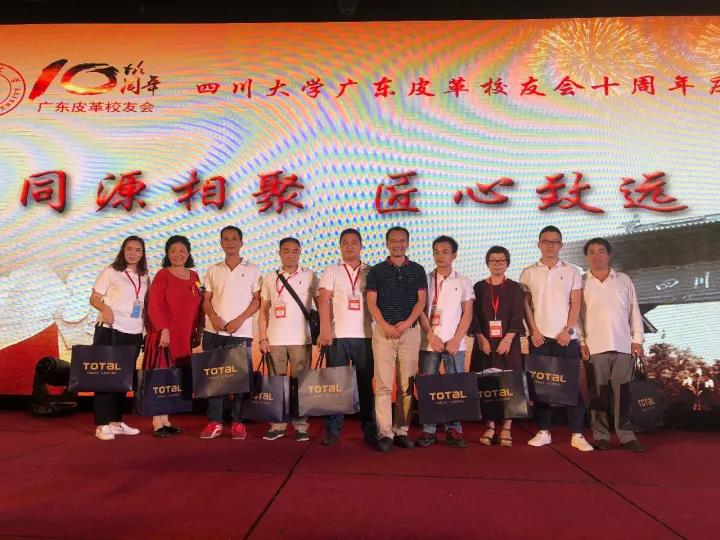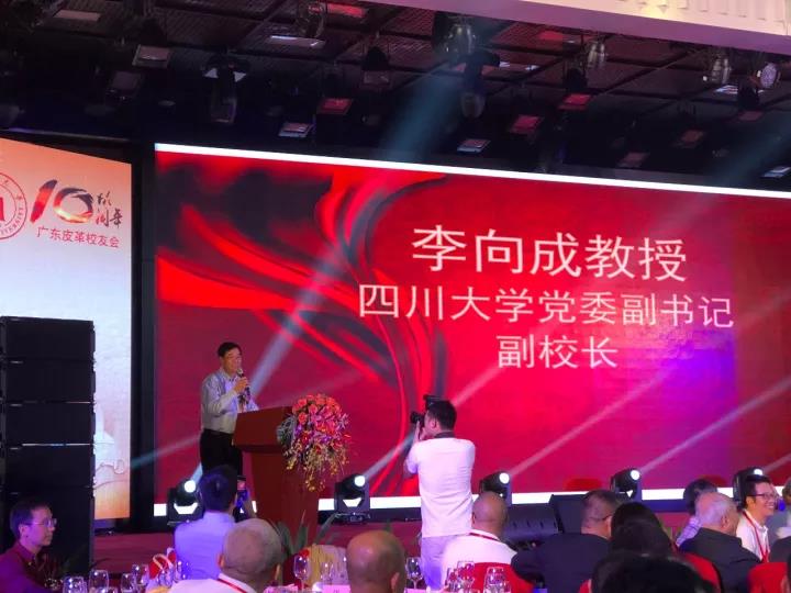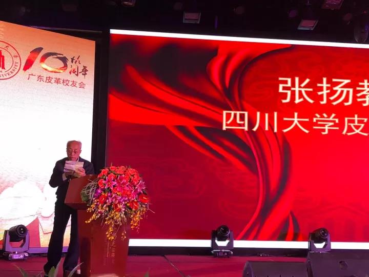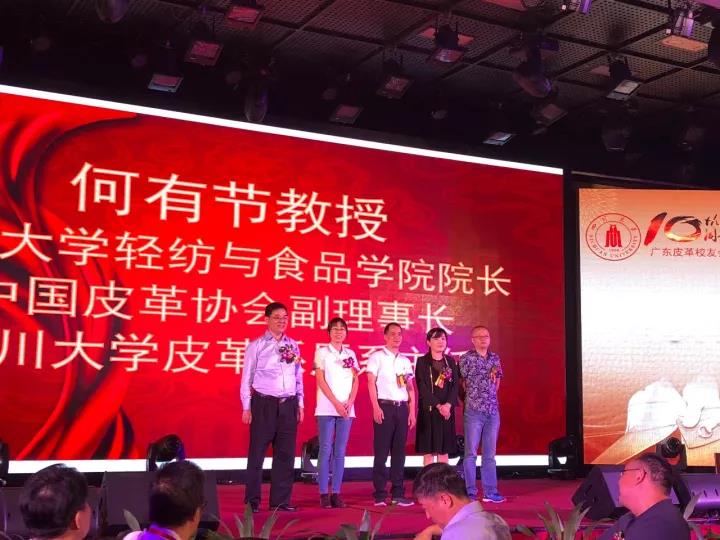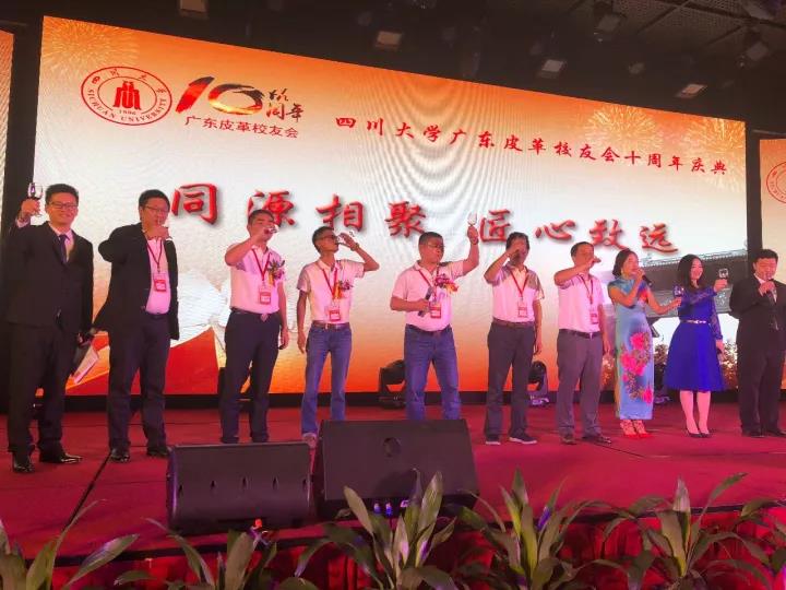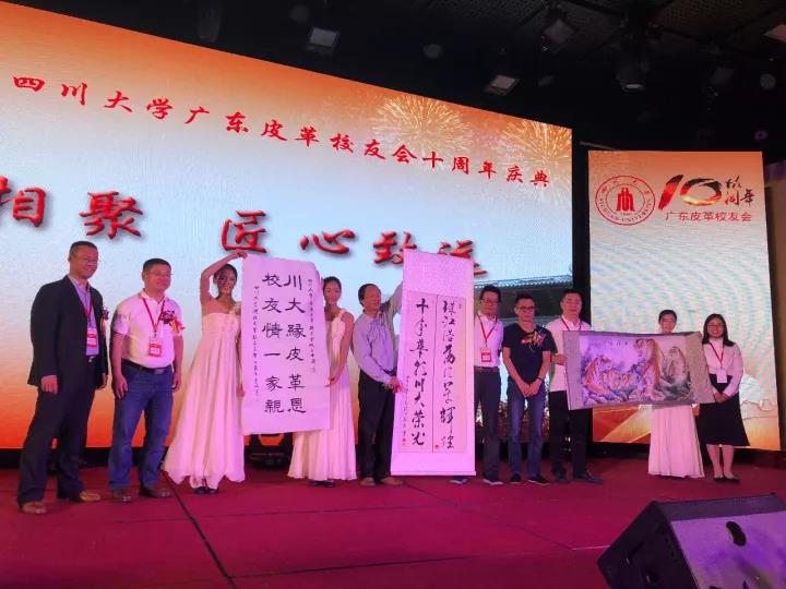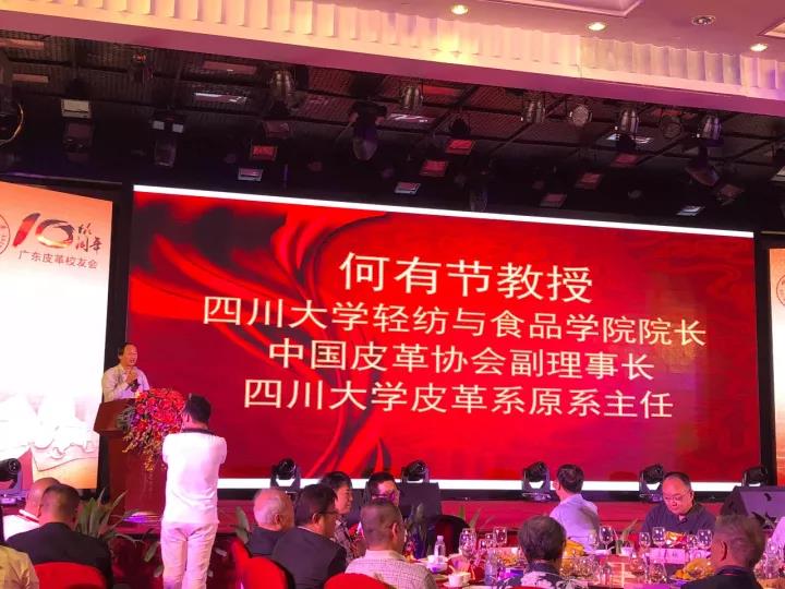 2017�11�12日,四川大学广东皮革校友会举行盛大庆典,隆重庆祝该会成立十周年。校党委副书记、副校长李向成教授,原校党委副书记、原副校长李志强教授,学院党政班子代表何有节、彭必雨,生物质与皮革工程系班子成员代表程海明、林炜、周建飞、杨璐铭以及张扬、廖隆理、杨淑娟、张廷友、周华龙、兰先琼、陈武勇、李正军、徐泀邱华军、黄钧等教师代表出席了本次庆典,与行业嘉宾和校友们共同庆贺并见证广东皮革校友会在新时代的再次扬帆启航。庆典过程中,学校党委副书记、副校长李向成教授,学校原党委副书记、原副校长李志强教授,皮革系张扬教授,中国皮革协会,学院及生物质与皮革工程系,教师代表,校友代表,兄弟院校嘉宾代表,兄弟校友会嘉宾代表,行业嘉宾代表等先后致辞祝福;举行了广东皮革校友会第三届校友理事会和各分会理事会的成立仪式;新任会长倪建荣先生以个人名义向四川大学生物质与皮革工程系、皮革化工与工程教育部重点实验捐�10万元,用于皮革英文期刊办刊;最后的集体祝酒、歌舞表演和抽奖活动把庆典活动推至一个又一个高潮�