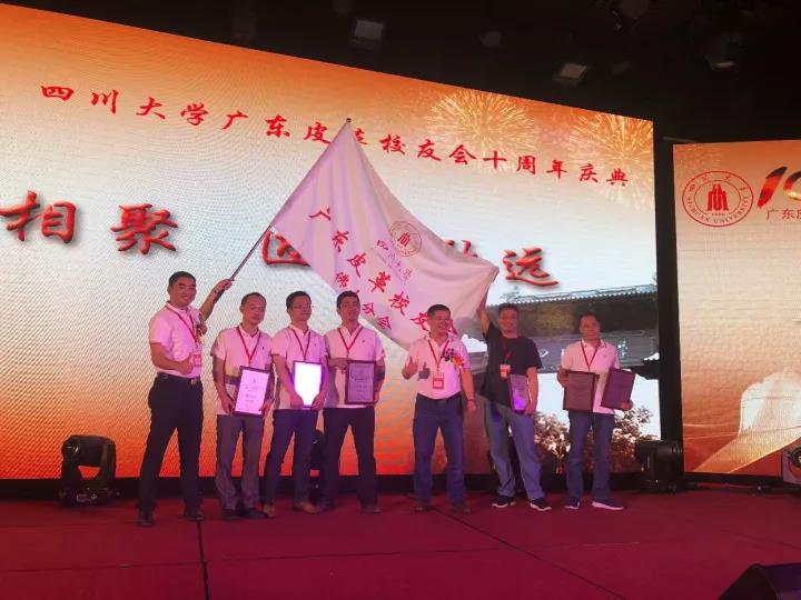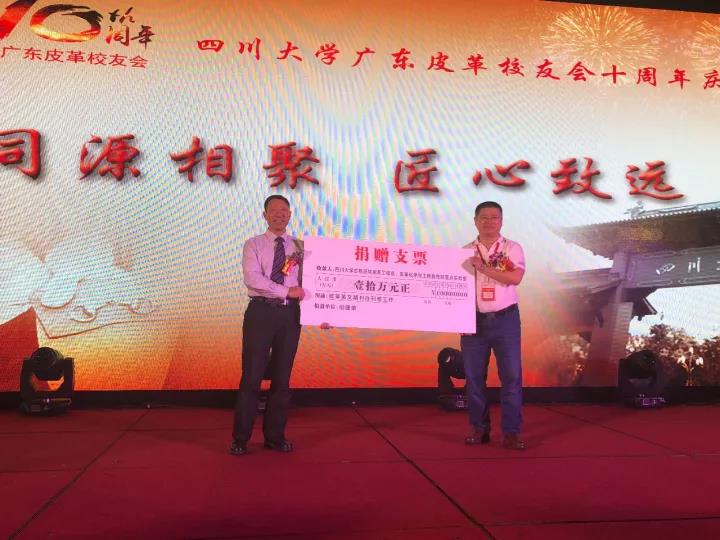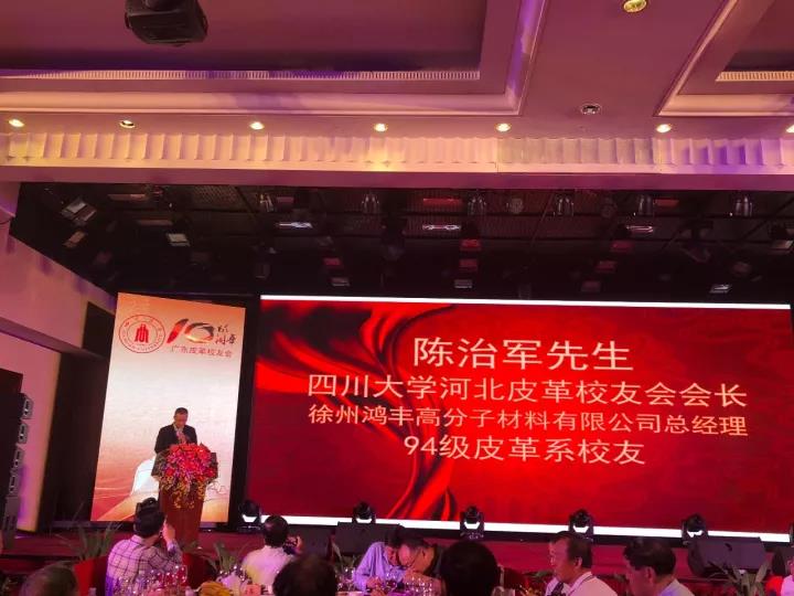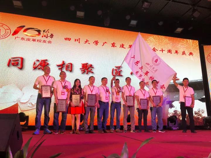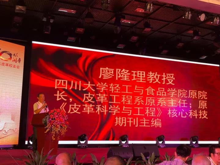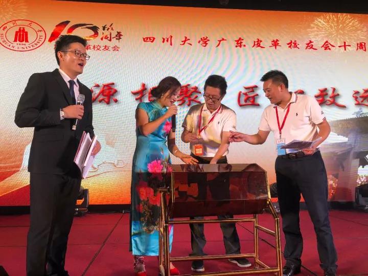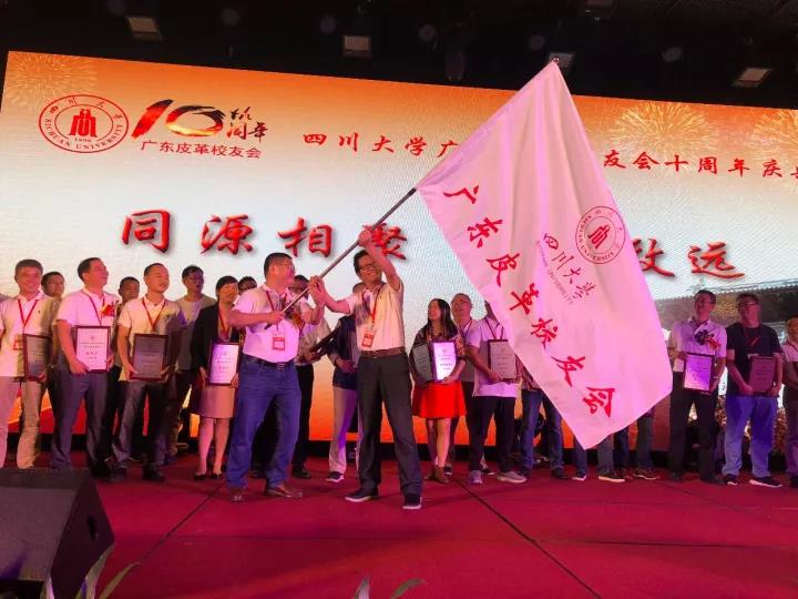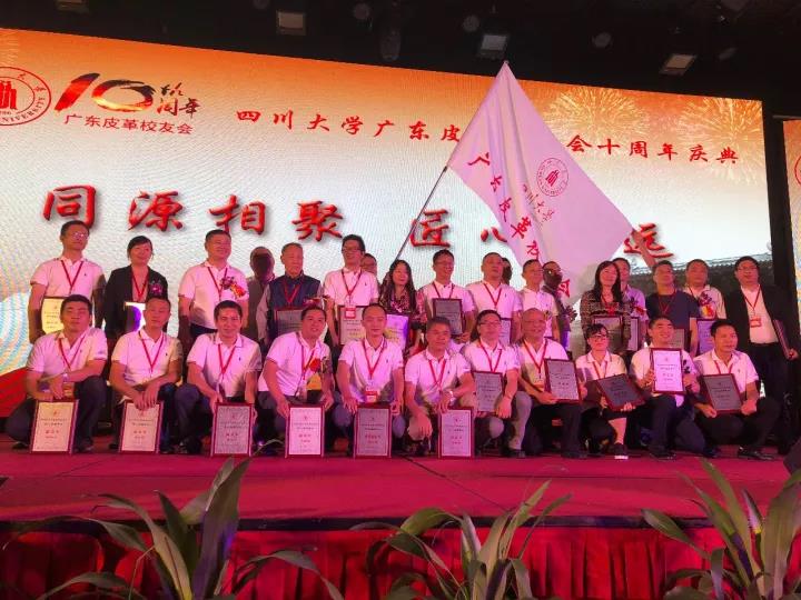 2017�11�12日,四川大学广东皮革校友会举行盛大庆典,隆重庆祝该会成立十周年。校党委副书记、副校长李向成教授,原校党委副书记、原副校长李志强教授,学院党政班子代表何有节、彭必雨,生物质与皮革工程系班子成员代表程海明、林炜、周建飞、杨璐铭以及张扬、廖隆理、杨淑娟、张廷友、周华龙、兰先琼、陈武勇、李正军、徐泀邱华军、黄钧等教师代表出席了本次庆典,与行业嘉宾和校友们共同庆贺并见证广东皮革校友会在新时代的再次扬帆启航。庆典过程中,学校党委副书记、副校长李向成教授,学校原党委副书记、原副校长李志强教授,皮革系张扬教授,中国皮革协会,学院及生物质与皮革工程系,教师代表,校友代表,兄弟院校嘉宾代表,兄弟校友会嘉宾代表,行业嘉宾代表等先后致辞祝福;举行了广东皮革校友会第三届校友理事会和各分会理事会的成立仪式;新任会长倪建荣先生以个人名义向四川大学生物质与皮革工程系、皮革化工与工程教育部重点实验捐�10万元,用于皮革英文期刊办刊;最后的集体祝酒、歌舞表演和抽奖活动把庆典活动推至一个又一个高潮�