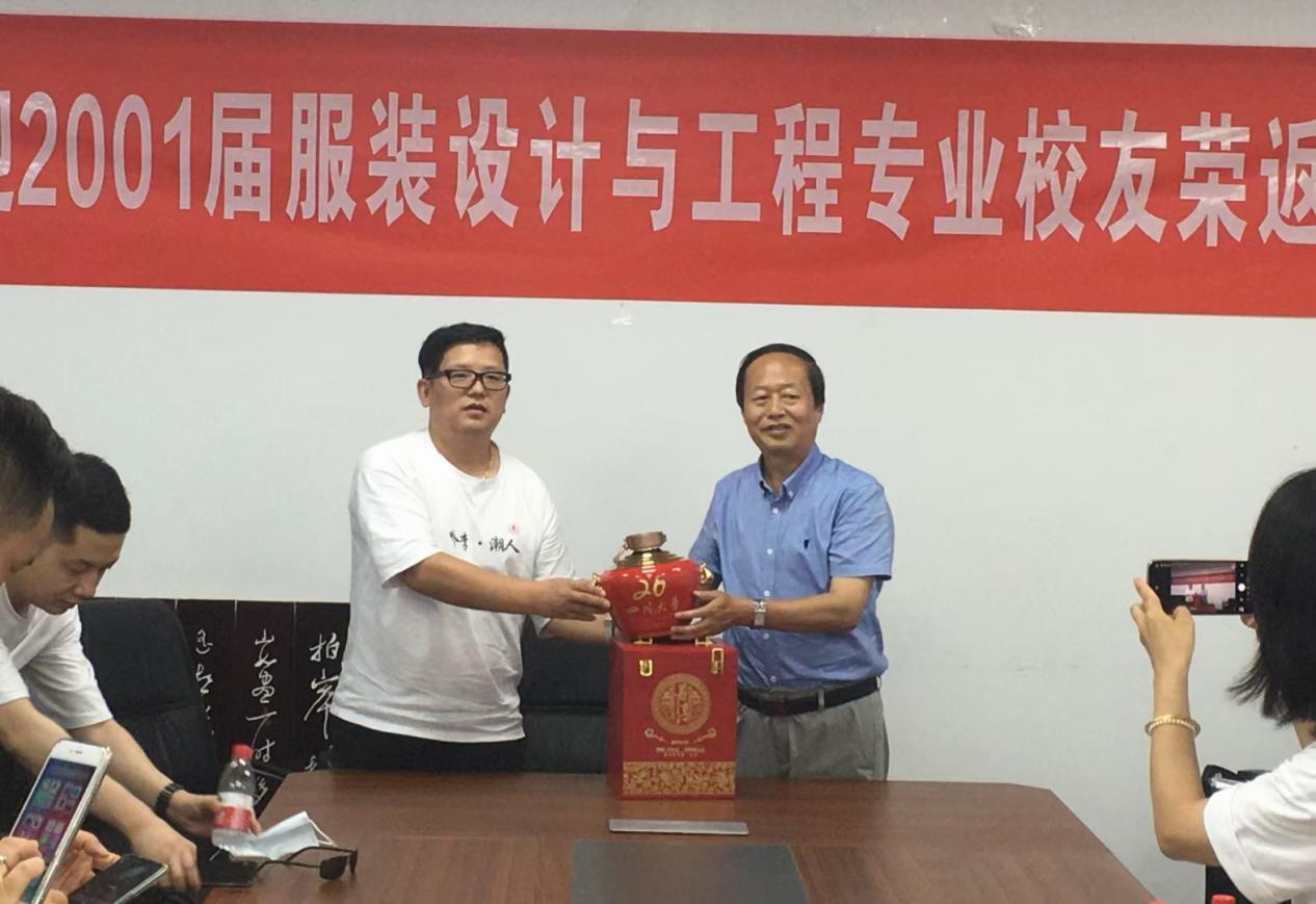 紧接着�2001届服装专业的校友逐一介绍各自毕业后的人生经历和各自在岗位上取得的成绩�校友们以真挚朴素的语言表达了同学之间的深情厚谊,感恩母校感谢恩师的拳拳之心,欢笑声掌声中依稀又见学生时代青春飞扬充满理想的身影。随后,欧度控股有限公司执行董事/副总裁李超校友代表2001届服装专业校友向学院赠�20周年纪念礼物�