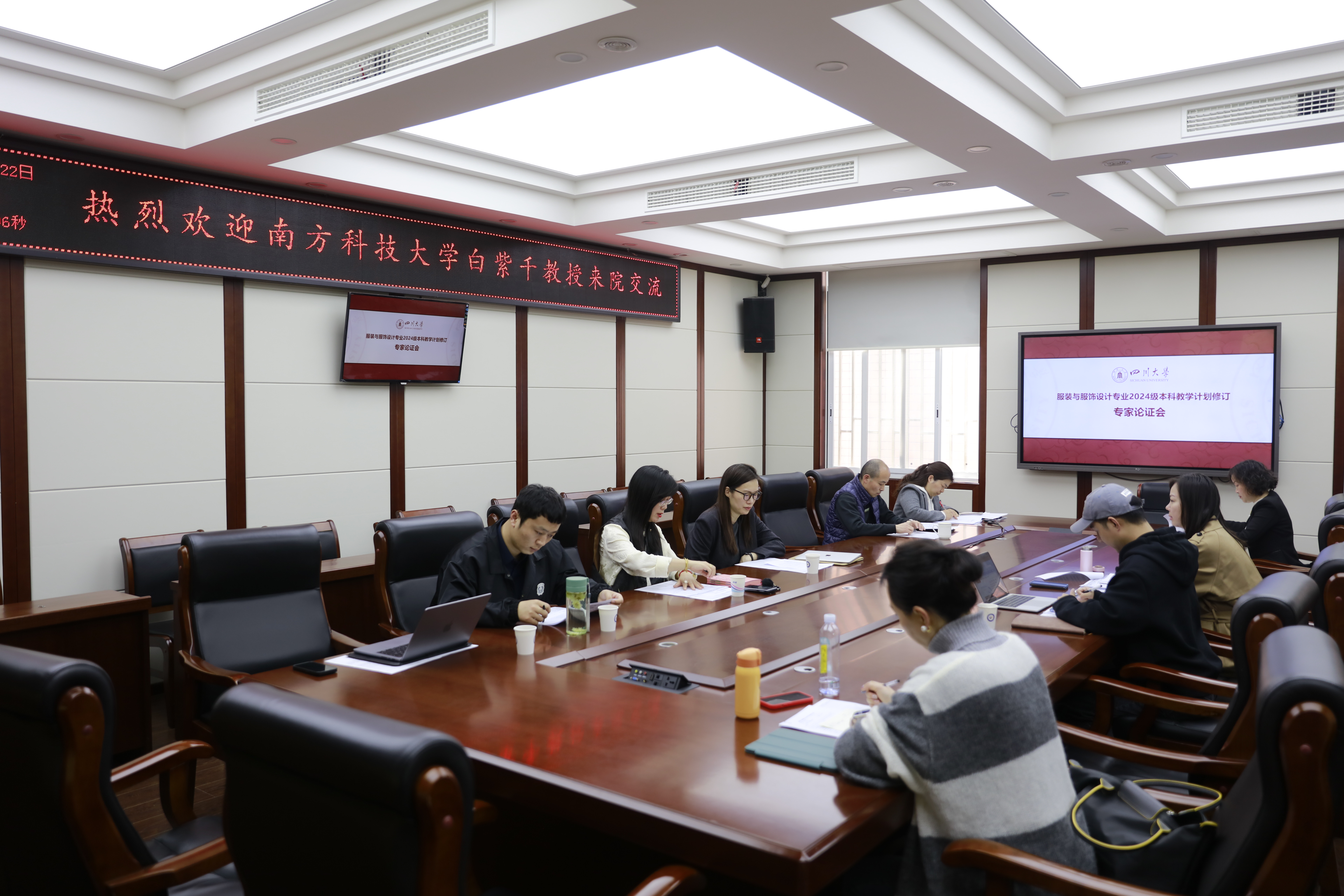 望江校区纺工副楼205会议室举行了2024级本科教学计划修订专家论证会。服装与服饰设计专业教师代表参加了会议,南方科技大学助理教授白紫千老师受邀为论证专家,副系主任申鸿老师主持会议。