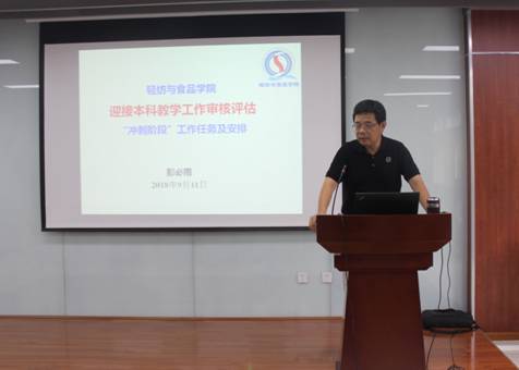 2018年9月11日下午三点,轻纺与食品学院在皮革楼报告厅召开本科教学审核评估“冲刺阶段”工作布置会议。学院刘晓虎书记、何有节院长、彭必雨副院长、何强副院长、冯国涛党副书记,各系系主任、副系主任、教研室主任和学院各教师出席了此次会议。
