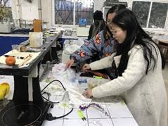 该课程通过理论知识讲授、课堂实践、课中课后作业等形式让同学们对每次的课程内容理解更加深刻、透彻,通过理论知识讲授让同学们对扎染的“过去、现在、未来”有更加深入的了解;通过课堂实践让同学们近距离感受到“中国古法扎染”的技术与魅力;通过课后作业让同学们对当天知识有巩固;通过以上内容让同学们认识到中国传统文化的内涵、传承到今天的原因,最重要的是让同学们增强同学们的自我民族意识、民族自信、同时也增加他们的民族自豪感。