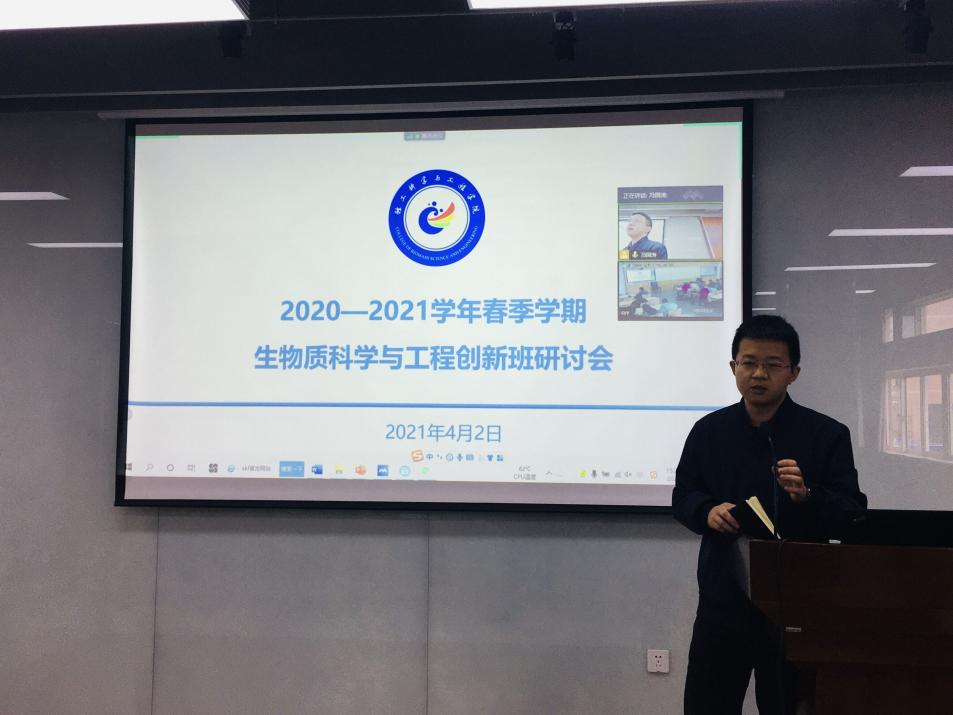为进一步掌握学生学习、科研工作开展情况,做好阶段性分析总结,为下一阶段高质量培养奠定基础�我院�2021�4�2��午采取线上线下相结合的方�同时在望江校�和江安校�召开2020-2021学年春季学期创新班研讨会。线下主会场研讨在皮革楼215报告厅进行,出席嘉宾有轻工科学与工程学院党委刘晓虎书记、何有节院长、党委冯国涛副书��各系所系主任、副系主任、部分班主任和学术导师代表以及教务老师和各年级辅导员,2019级全体创新班学生通过腾讯会议参加了线�研讨��会议由学院党委冯国涛副书记主持�