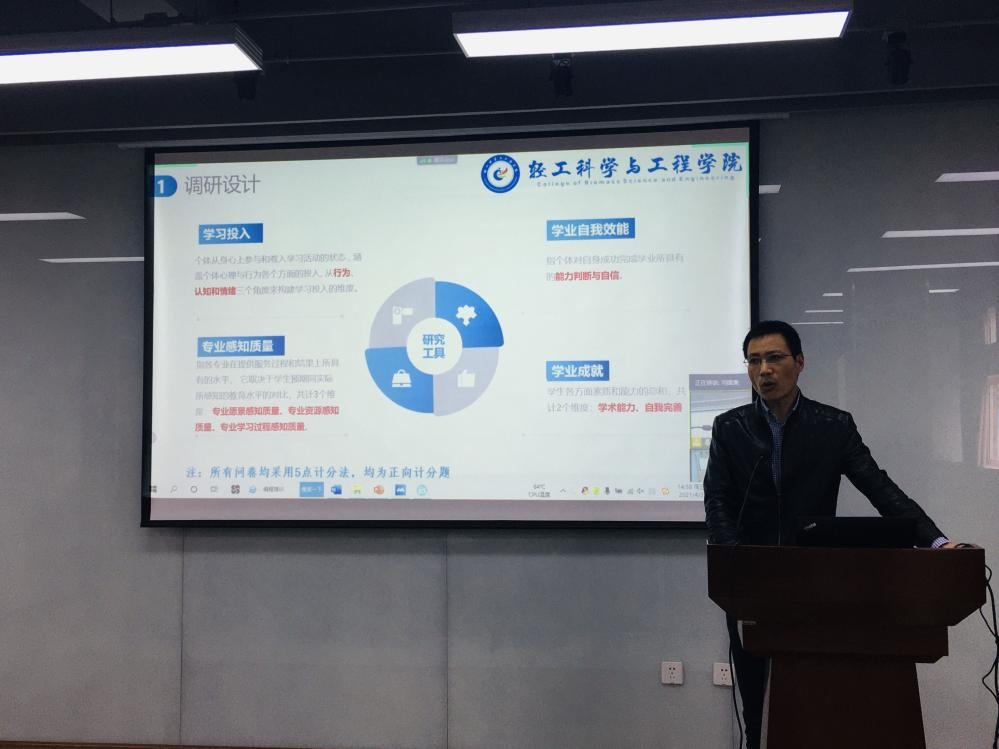 冯国涛副书记向与会人员介绍了针对创新班和对应普通班同学开展的问卷调研和个别访谈结果,并从学习投入、专业感知质量、学业自我效能、学业成就四个维度对调研结果进行了分析,为下一步工作开展思路提供了积极的建设性意见�