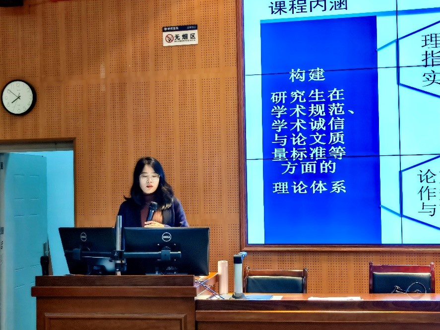 为贯彻落实《关于进一步规范和加强研究生培养管理的通知》、《四川大学关于加强学术诚信体系建设的实施办法》和《四川大学进一步加强研究生学术道德与学风建设的实施方案》文件要求,积极响应《关于开展四川大学诚信教育教学课件展示及优秀主讲教师评选活动的通知》文件要求�2021�11�2日晚19:30,尚娇娇老师于研究生�2�101讲授了《学术规范与研究生论文写作指导》课程,现场共有百余名硕士研究生和博士研究生进行学习�