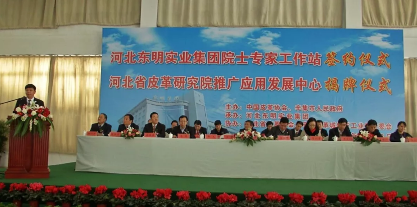 2017年12月23日,河北东明实业集团院士专家工作站签约仪式、河北省皮革研究院推广应用发展中心揭牌仪式在河北省辛集市举行。本次活动由中国皮革协会、辛集市人民政府主办,河北东明实业集团承办,河北省皮革协会、辛集皮革城制革工业区管委会协办。