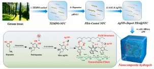 水凝胶作为一类高度亲水的三维网络结构,赋予了水凝胶传感器特有的柔性和生物相容性,但目前水凝胶的断裂强度和断裂伸长率还不够满足作为柔性传感器的需要。为了同时提高材料的高拉伸性和拉伸强度以及赋予水凝胶传感器优异传感性能,该团队采用原位还原法用PDA将AgNPs沉积在纤维素纳米纤维表面制备得到AgNPs沉积PDA包覆的纤维素纳米纤维(PNAg),以PNAg纤维为互穿网络,通过AM单体的自由基聚合制备了一种基于纤维素纳米纤维(NFC)和聚丙烯酰胺(PAM)共价交联网络的PNAg水凝胶,并组装得到水凝胶双模式传感器。纤维素纳米纤维赋予水凝胶优异的机械性能;银纳米粒子为水凝胶传感器提供了优异的抗菌性能和长效抗菌性能。相关研究以“Skin-inspired nanofibrillated cellulose-reinforced hydrogels with high mechanical strength, long-term antibacterial, and self-recovery ability for wearable strain/pressure sensors”为题发表在Carbohydrate Polymers上。该系列研究工作第一作者为博士研究生王双,通讯作者为杜宗良教授和王海波副教授。