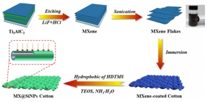 Scheme 1. Schematic illustration of the fabrication procedure of MX@SiNPs cotton fabric.