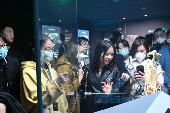 在讲解员的带领下,众人依次参观了综合馆及青铜馆。博物馆内展列的2.62米的青铜大立��3.95米的青铜神树��1.38米的青铜面具,均堪称独一无二的旷世神品;而以金杖为代表的金器,以满饰图案的边璋为代表的玉石器,亦属前所未见的稀世之珍�一件件瑰宝从多方面不仅展示了一个瑰丽多彩的古蜀世界,更展现了中华文明起源、发展脉络和灿烂成就。支部成员认真聆听讲解员的讲解,仿佛穿梭时空,置身于距今4000多年的古蜀文明之中,深刻体会了古蜀文化中兼容并包,渴求开放的发展理念,领略了古蜀匠人巧夺天工的技艺和浪漫的艺术想象与创造力,感受到了三星堆文明的深邃厚重、灿烂辉煌�