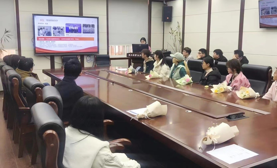随后,来自本科生第三党支部的优秀女性党员代表张鑫同志为大家进行经验分享,她提到自己就像是一个需要长途跋涉的勇者,只需要看清脚下每一步而已。她从自己的切身经历,激励大家将红色精神的所感所悟应用到具体实践当中。紧接着,党支部还邀请了本科生第一党支部的优秀女性党员代表韦娜同志就自身学习、科研、生活和自我反省几个方面进行成长经验分享,学习如何设定明确的目标,如何应用多样性的学习资源,鼓励大家不断提高自己的综合素质和能力,为社会做出更大的贡献。