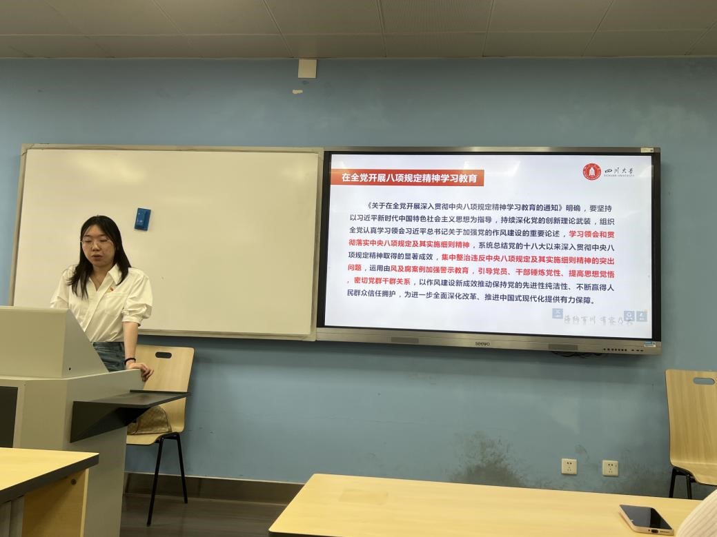 全体党员认真学习、积极交流,深刻领会中央八项规定精神的丰富内涵。支部成员一致表示,要将中央八项规定精神内化于心、外化于行,从自身做起、从点滴小事抓起,在学习生活中发挥党员先锋模范作用,争做正风肃纪的表率。