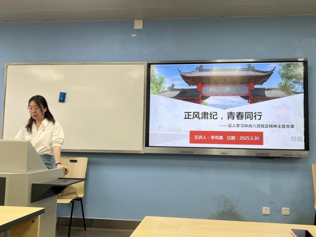 本科生第三党支部在基教楼A606教室开展“正风肃纪,青春同行”主题党课。