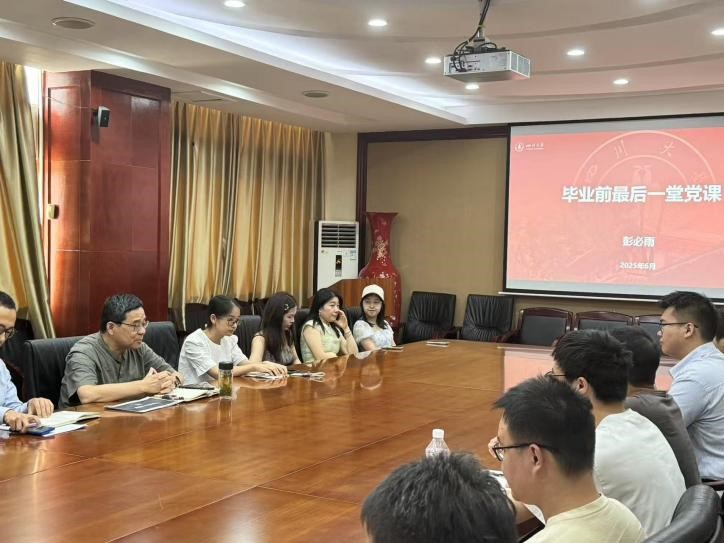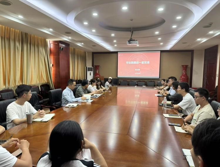 2025年6月16日下午15:00,NT动漫 院长彭必雨教授在皮革楼209会议室为2025届毕业生党员代表讲授了毕业前“最后一节党课”。学院姜新副书记、2025届本科生辅导员贾欣驹老师、研究生辅导员付润芳老师和毕业生党员代表参加了此次活动。