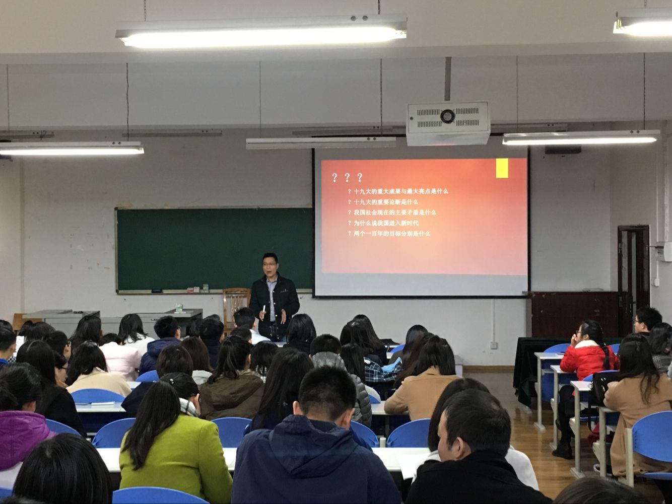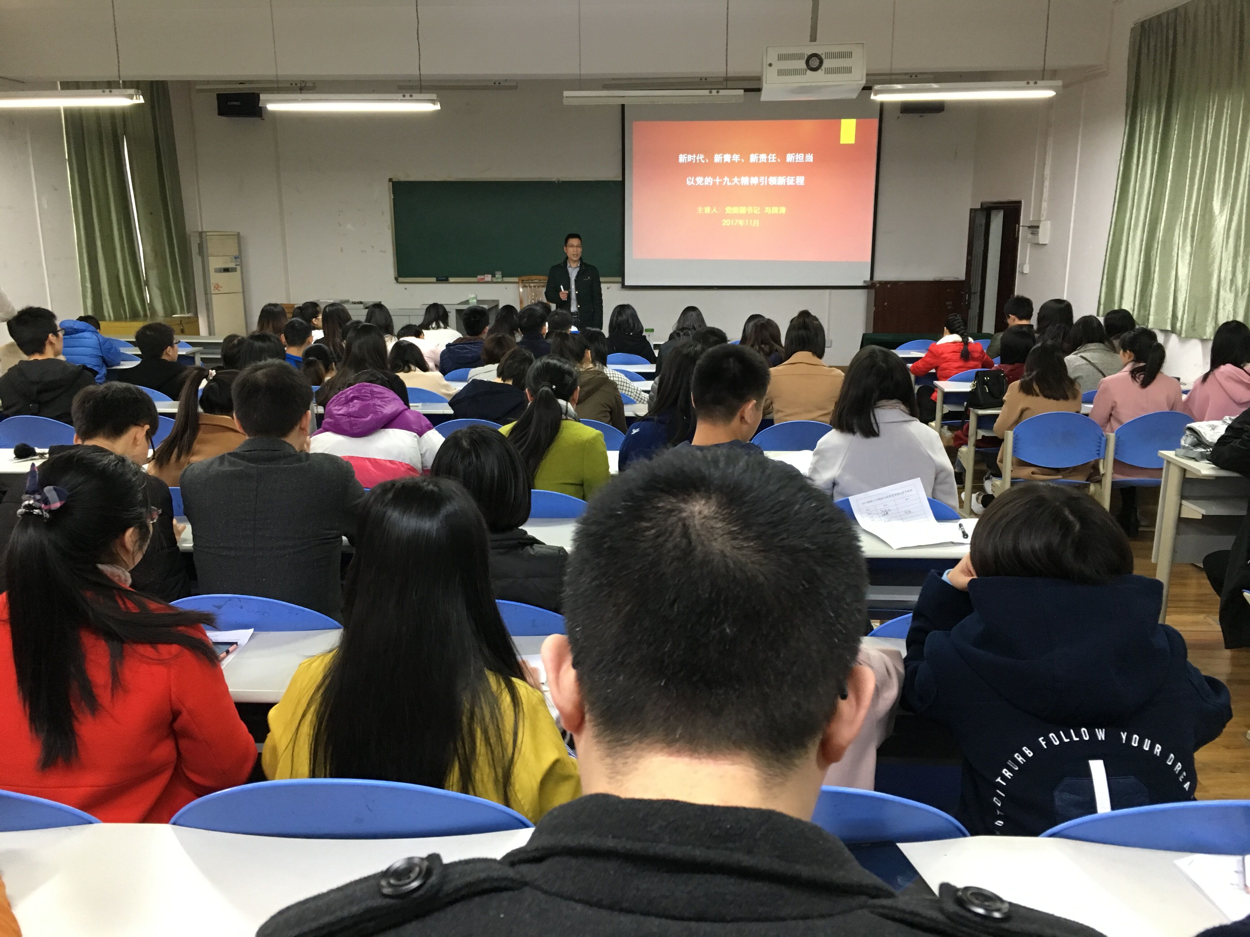 按照学院学生党支部学习贯彻十九大精神实施方案的计划安排,轻纺与食品学院研究生党支部学习贯彻十九大专题报告会于2017年11月23日12:30在纺工附楼205教室顺利举行。本次专题报告会由轻纺与食品学院党委副书记冯国涛老师主讲,来自轻纺与食品学院研究生各党支部党员、各党支部拟发展对象共计150余人参加了此次活动。本次报告会的主题是“新时代、新青年、新责任、新担当,以党的十九大精神引领新征程”。