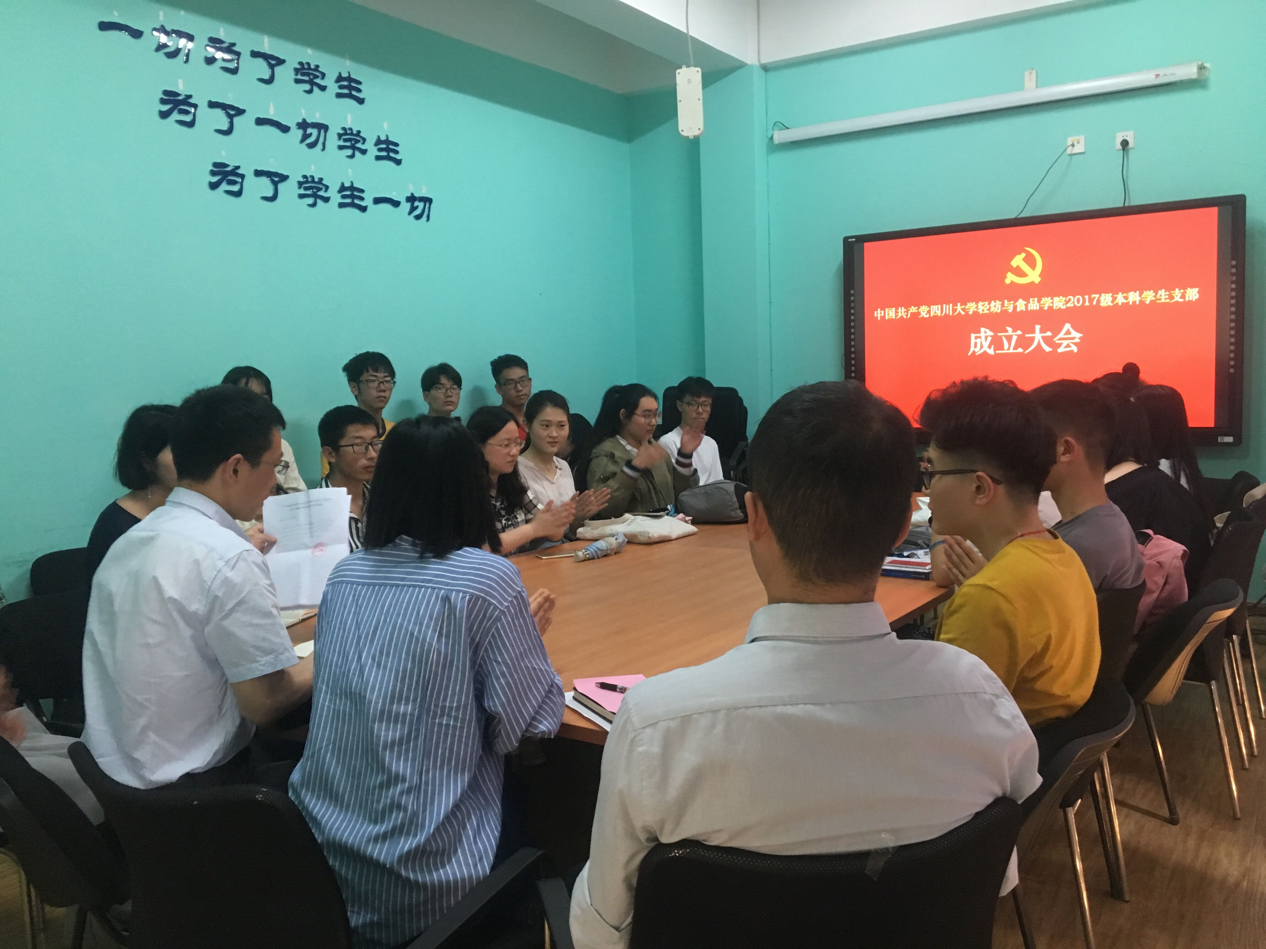 2019年4月24日中午12点30分,我院2017级本科学生党支部成立大会暨第一次组织生活会在江安校区十四舍会议室顺利举行。
