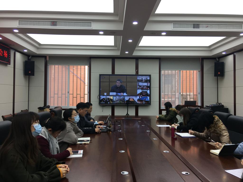 2020年12月24日,学校在望江校区明德楼召开基层党建工作总结会,校党委书记王建国、校党委副书记曹萍、郭勇以及学校相关单位负责人、全体专职组织员在主会场行政楼414参会。按照学校工作要求,学院党委刘晓虎书记、冯国涛副书记以及全体教工支部书记、学生支部书记在纺工附楼205会议室参加了分会场学习。本次会议由校党委副书记曹萍主持。