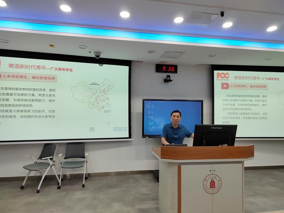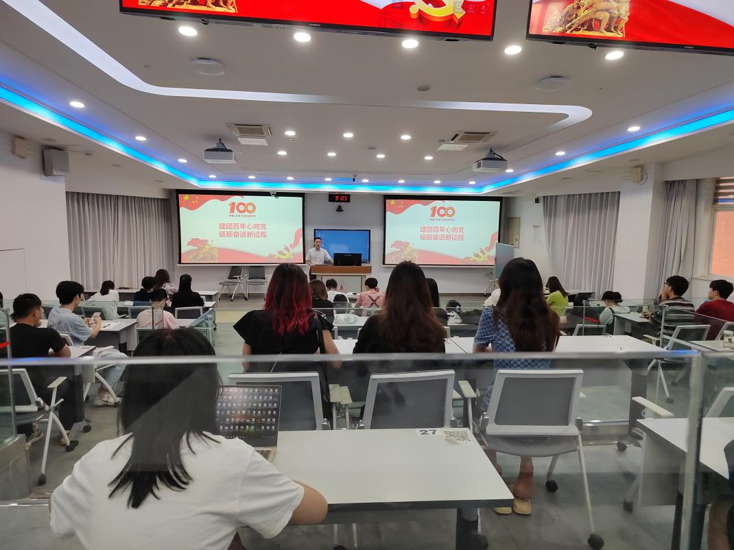 2022年6月8日上午,李天富书记在基础教学楼C103教室为我院本科生第一党支部和第二党支部全体党员讲授“建团百年心向党,砥砺奋进新征程”专题党课。学院党委冯国涛副书记、本科生第一党支部支部书记王舒灏老师、本科生第二党支部支部书记杨维老师以及两个支部全体党员同志参加了本次学习。本次党课由冯国涛副书记主持。