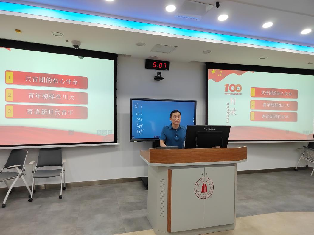 在本次专题党课中,李天富书记以习近平总书记在庆祝中国共产主义青年团成立100周年大会上的讲话为主题,从共青团的初心使命、青年榜样在川大、寄语新时代青年等三个方面进行讲授。首先,李书记与党员同志们一起回顾了共青团在新民主主义革命时期、社会主义革命和建设时期、改革开放和社会主义现代化建设新时期、中国特色社会主义新时代不同阶段的初心使命,指出共青团的初心使命就是“坚定不移跟党走,为党和人民奋斗”,并分享川大共青团与青年人在不同历史阶段不懈奋斗的发展历程与感人故事。随后,李书记列举了NT动漫