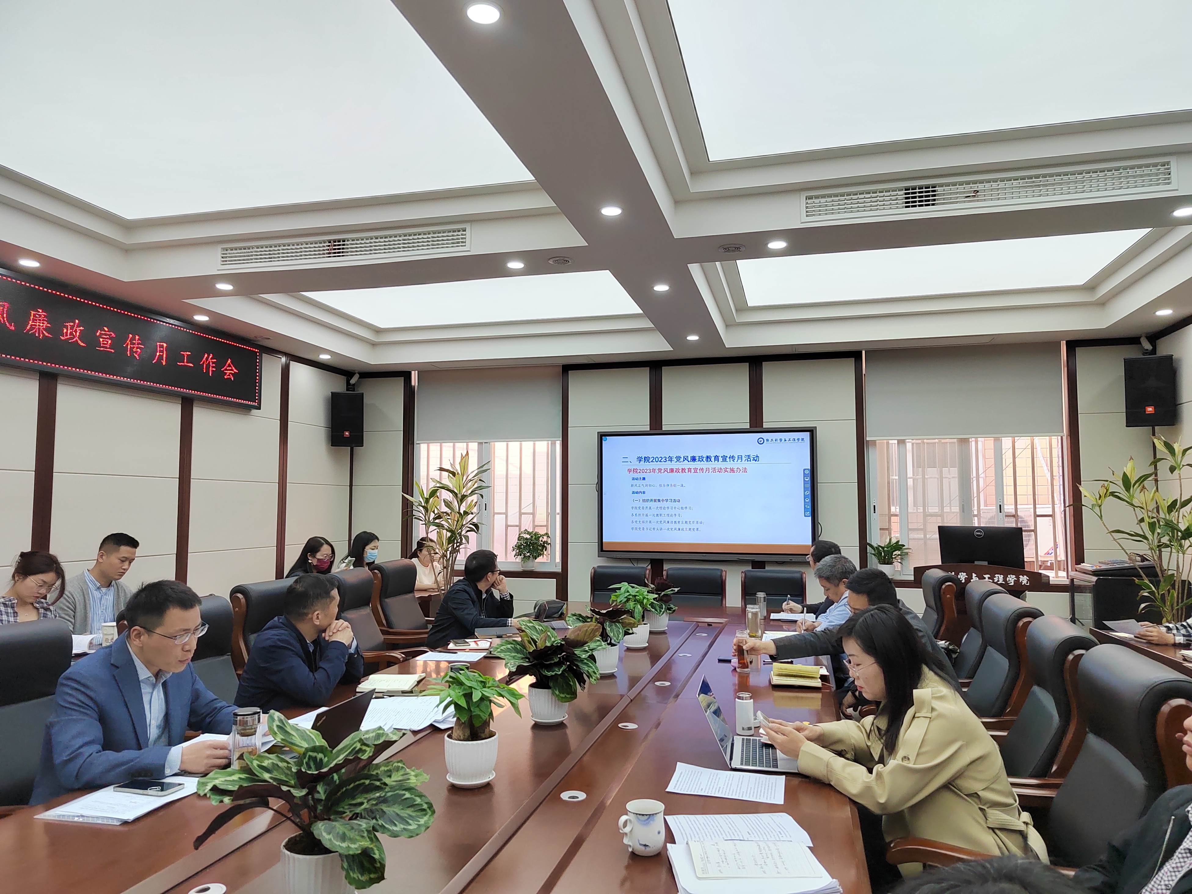 在2023年党风廉政教育宣传月工作会上,冯国涛副书记首先围绕“新风正气润初心,担当作为创一流”的主题介绍了学院2023年党风廉政教育宣传月活动实施办法,并要求院内各单位、各党支部要将党风廉政教育宣传月活动与师德师风、科研诚信、学术诚信教育等贯通融合,并与学科专业建设、师资队伍、人才培养等工作统筹协调、一体推进,并力戒形式主义、官僚主义,确保活动取得实效,最终形成常态化、长效化党风廉洁教育机制。