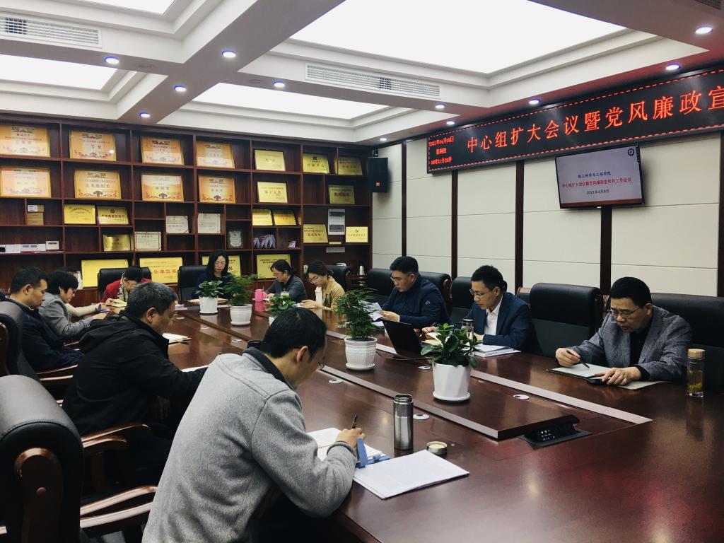 2021年4月8日上午,学院在纺工附楼205会议室召开理论学习中心组扩大会议暨党风廉政宣传月工作会议。学院领导班子、两委委员、组织员、教职工党支部书记及科级干部出席会议。会议由刘晓虎书记主持。