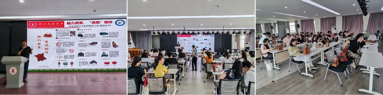 分工会的刘文涛副教授为现场的教职工们深入浅出地讲解了“真皮”的概念、成品革的分类以及皮革生产工艺等方面的知识,让在场的每一位参与者都对皮革有了全新的认识。同时,现场发放的科普宣传折页也为老师们提供了更多关于皮革的实用信息。
