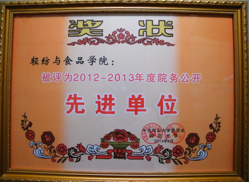 经过本单位自查总结、本单位申报和学校信息公开领导小组综合考核评选,我院获“2012—2013年度院务公开工作先进单位”。(川大校〔2014〕7号《NT动漫