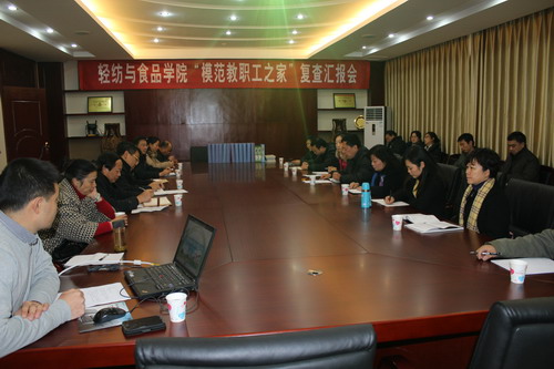 2012年12月25日上午,轻纺与食品学院“模范教职工之家”复查汇报会在皮革楼二楼会议室举行,校工会常务副主席林红及NT动漫