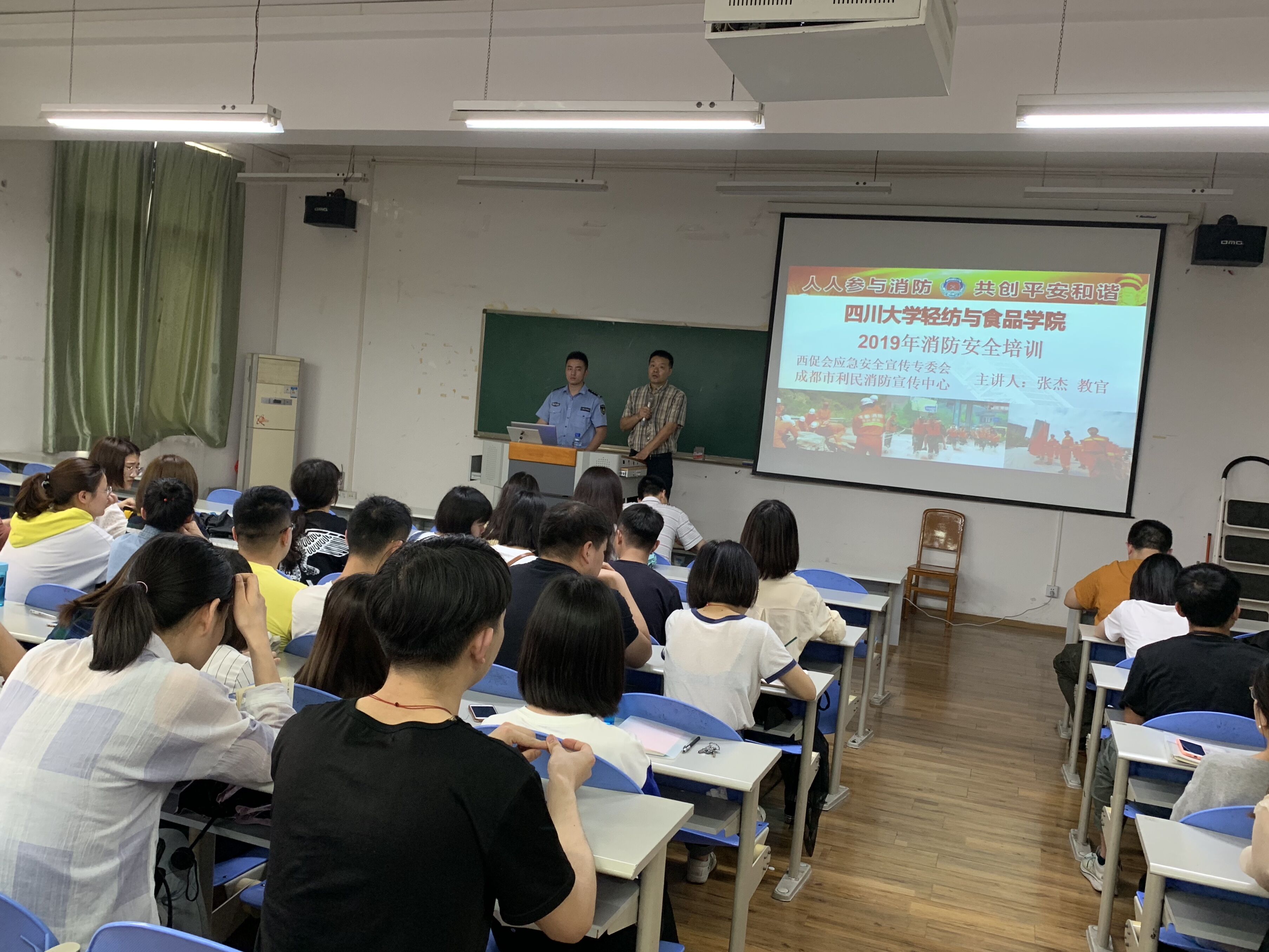 为进一步加强实验室安全管理,强化学生的消防安全教育,增强学生消防安全意识,提高抗击突发事件的应变能力,学院把消防安全知识培训作为《研究生综合素质课》的组成部分。2019年4月23日下午,轻纺与食品学院邀请成都市利民消防宣传中心的张杰教官对我院学生开展了消防安全知识培训。学院党委副书记冯国涛老师、副院长肖凯老师出席此次培训会,学院2018级全体硕士和博士研究生参加。