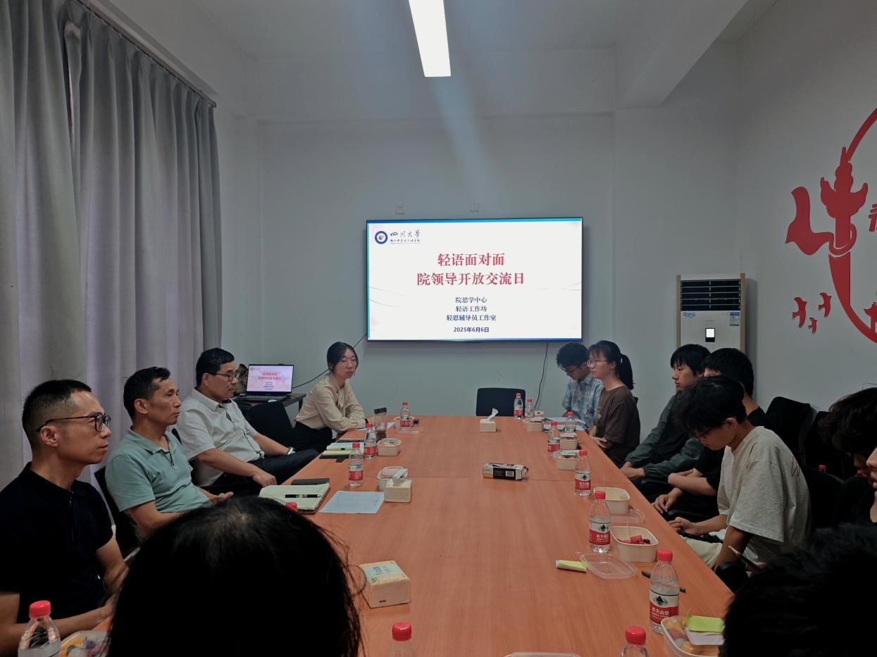 2025年6月6日,NT动漫 党委书记李天富、院长彭必雨、副书记姜新赴江安校区十八舍“一站式”学生社区,以茶话会形式开展“轻语面对面——院领导开放交流日”活动,与本科生亲切交流。2023级本科生辅导员李有真主持活动。