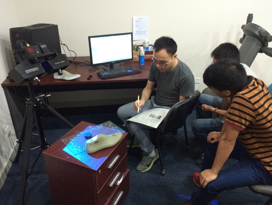 随后学生被分在了“鞋科技实验室”,这个部门的主要职责是鞋产品的3D设计与开发、鞋子各项性能质量的检测和脚型、楦型、足部人体力学等理论的研究。在这里,领导和同事们都很热情,在同学遇到不懂的问题时都会详细的给我们解释清楚,相信在这里实习一定会学到很多宝贵的经验和知识。