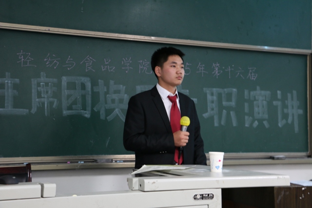 随着竞职演讲大会的落幕,我院团委学生会第十六届主席团名单即将尘埃落定。本次竞职演讲既给每位竞选人提供了自由发挥和充分展示自己的空间,也最大程度地保证了换届竞选工作的公平、公正、公开和择优原则,充分体现了轻纺与食品学院的温暖与民主。