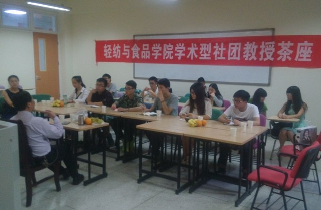 2015年4月28日19:00,轻纺与食品学院学术型社团教授茶座在NT动漫