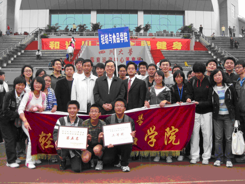 望江校区体育场圆满闭幕。轻纺与食品学院积极组织学生参赛,以团体总分352分跃居全校第五,再创我院校运会成绩历史新高。