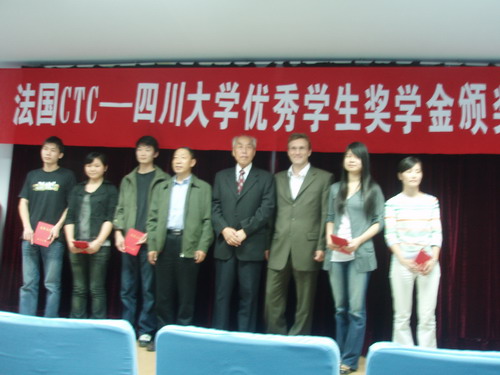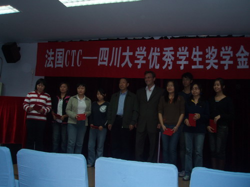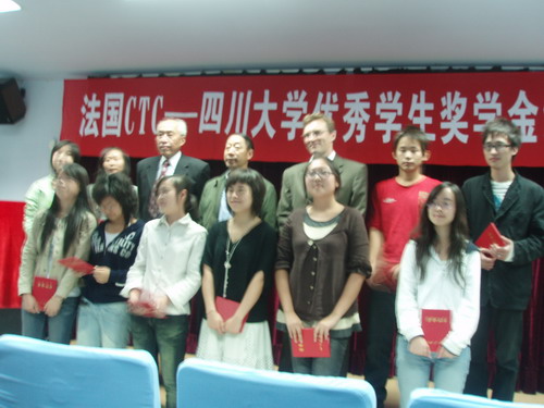 颁奖典礼开始前,陈武勇院长发表了热情洋溢的讲话,对法国CTC公司在我院设立奖学金表示感谢,对本次获奖同学表示祝贺并提出了殷切的期望。随后,法国CTC公司皮埃尔总经理简要介绍了本公司的情况,并勉励获奖同学再接再厉,争取更好的成绩。颁奖典礼结束后,皮埃尔总经理跟同学进行了交流,对同学所关心的问题进行了详细的讲解。本次优秀学生奖学金共有27名同学获此殊荣。