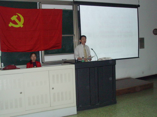 张主任以饱满的热情首先讲解了党员的权利与义务、如何坚定共产主义信念以及如何从一名爱国主义者转变成一名坚定的共产主义者,最后还对所有入党积极份子同学提出了几点希望。希望同学们在平时的生活中,从自己身边的小事做起,以一名共产党员的标准来严格要求自己,争取早日在行动上加入中国共产党。