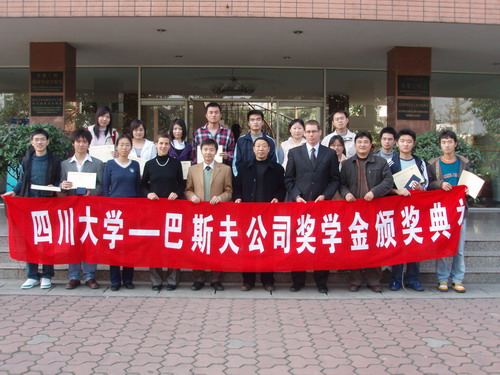 颁奖典礼开始前,陈武勇院长发表了热情洋溢的讲话,对巴斯夫(中国)有限公司皮革特性化学品部在我院设立奖学金表示感谢,对本次获奖同学表示祝贺并提出了殷切的期望。随后,巴斯夫(中国)有限公司大中华区总经理贝格博士简要介绍了本公司的情况,并勉励获奖同学再接再厉,争取更好的成绩。