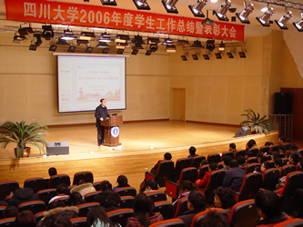 2006年度学生工作总结暨表彰大会在望江文华活动中心二楼音乐厅举行。校党委副书记李志强教授,学生工作部、校团委主要负责人及各学院主管学生工作的党委副书记、辅导员出席了会议。