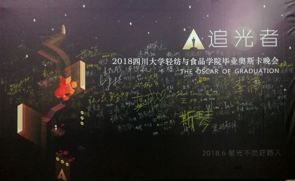 6月,又一届轻纺人迎来了毕业的季节�2018�6�9日晚七点,轻纺与食品学院2018届“追光者”毕业奥斯卡晚会在四川大学望江校区文华活动中心二楼音乐厅举行,为2018届学院全体毕业生送上毕业祝福�