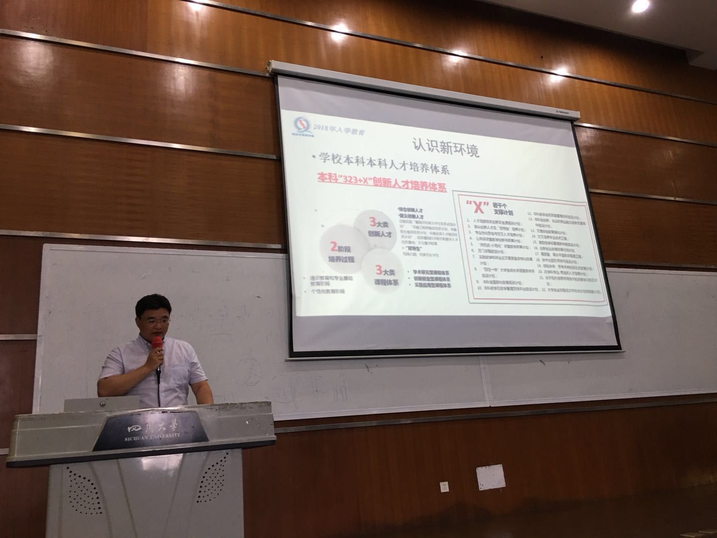 在典礼结束后,党委书记刘晓虎副教授为新生们讲授了开学第一课,鼓舞同学们努力成为具有崇高理想、独立人格、广博知识、开阔心智、国际视野的川大人。