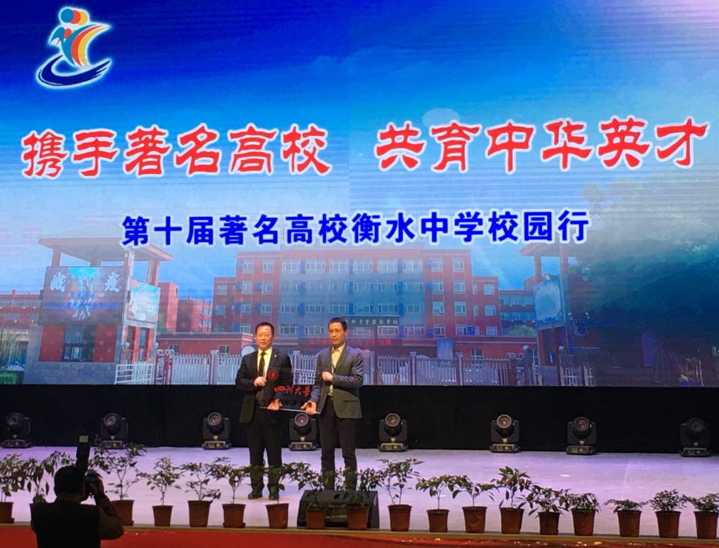 在“校园大学节”期间,参会老师参加各高中学校大学节开幕式,充分认识与了解高中的生源特点与生源优势,并与高中学校领导班子深入交流,就招生宣讲、专家报告、学生在大学期间综合表现等进行了充分交流,进一步加强与高中学校的交流与合作。同时,冯国涛副书记还代表学校授予衡水中学NT动漫